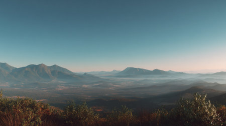 Majestic Mountain Range View at Sunrise with a Light Haze