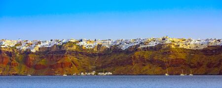 Santorini Island in Greece. Panoramic view. Tourist destination. Summer.