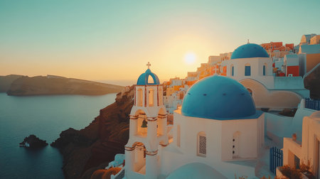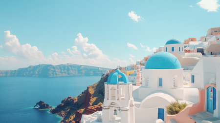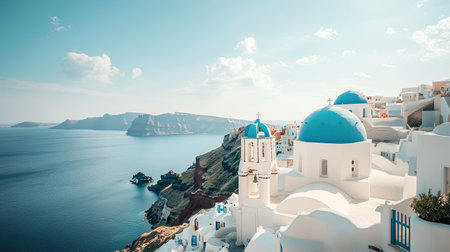 Experience the breathtaking beauty of Santorini with stunning blue domes overlooking the serene ocean. This picturesque landscape captures the essence of Mediterranean life and travel.