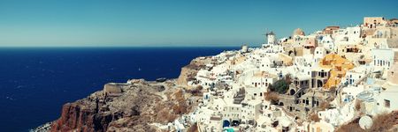 Panoramic view of Oia village on Santorini island, Greece.
