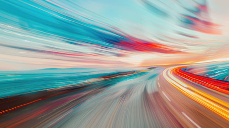 Coastal Highway at Sunrise with Colorful Light Trails.