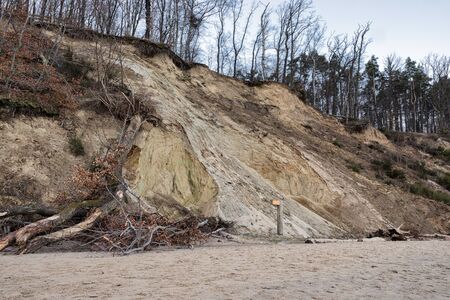 beach of the Baltic Sea in Orzechowo, Poland, dunes with trees and erosion