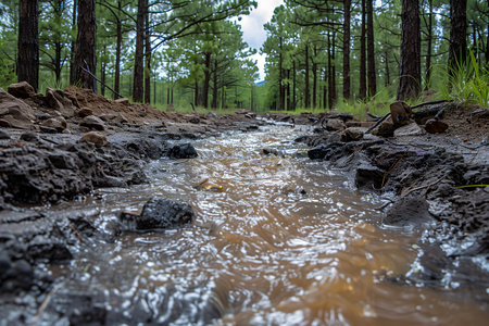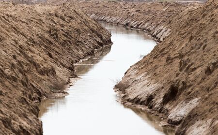 Close-up of a cloudy creek on a stale brown soil