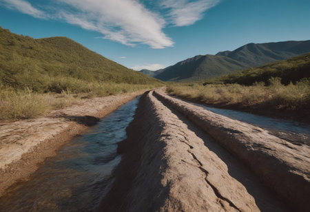 mountain river beautiful landscape, realistic illustration