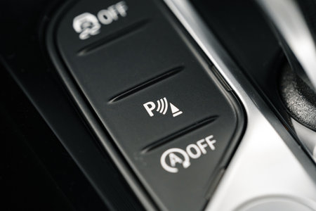 Seat heating controller buttons close up view. Car interior. Seat heater button, car interior.
