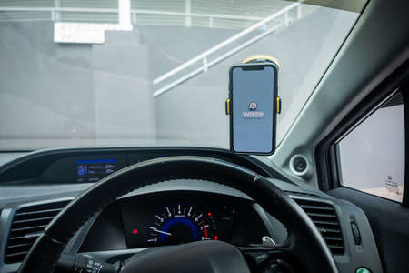 An iPhone X with Waze navigation app inside the car. Waze has gain popularity for its good navigation.