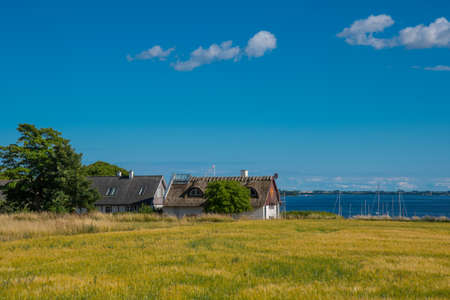 The village on island of Nyord on the Danish countryside on a sunny summer day