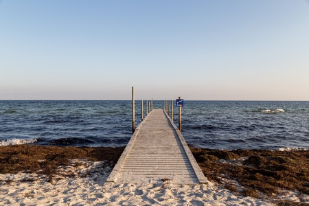 Ishoj, Denmark - September 24, 2017: A wooden pier at the beach in Ishoj just South of Copenhagen.