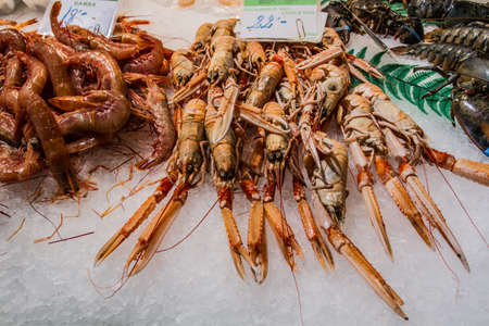 Barcelona, Spain. Fresh prawns