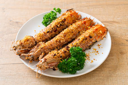 crayfish or mantis shrimp grilled in Chinese market ,seafood background , seafood market