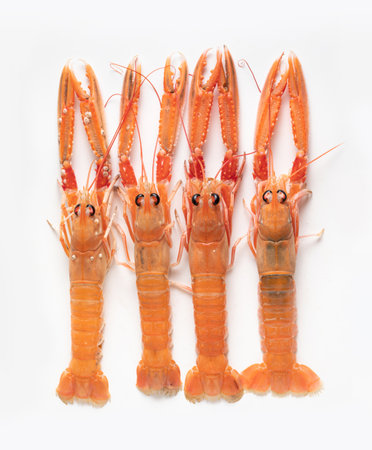 Fresh Norway lobsters isolated from white background