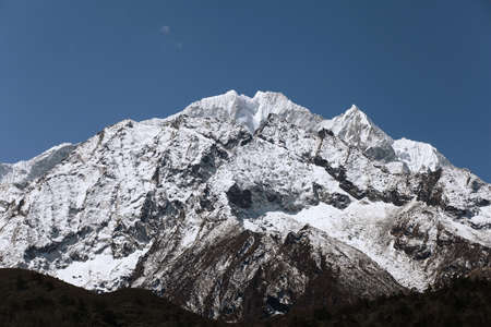 Thamserku Mountain peak in Himalayas, Nepal. Sagarmatha National Park