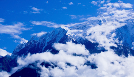 Clouds over the snowcapped mountains, Himalayas, Uttarakhand, India