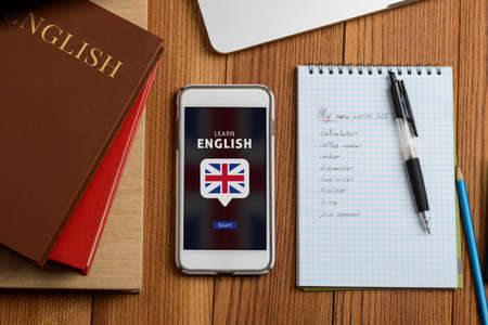 Learn a New Language on the paper isolated on it desk. Business and inspiration concept