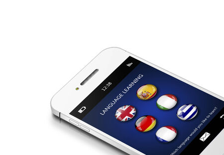 Word writing text Learn A New Language. Business photo showcasing ability to communicate in the second orforeign language Modern gadgets with white display screen under colorful bokeh background