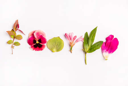 Mix edible flower salad over white background