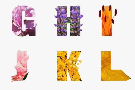 Flower font Alphabet g,h,i,j,k,l made of Real aliverose rose flower cut shape of letter. Collection of brilliant flora font for your unique decoration in spring, summer many concept idea