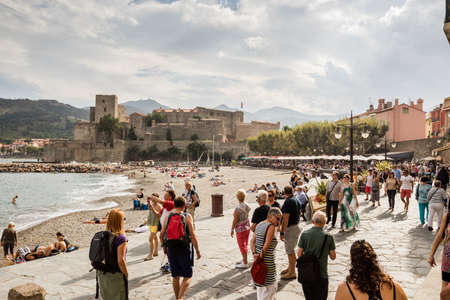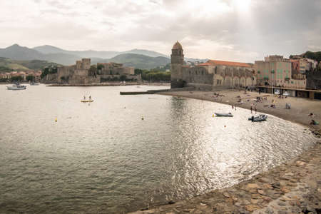COLLIURE - SEPTEMBER 13: Tourists relax in the beach in the small village of Colliure, south France. September 13, 2015 Colliure, France.