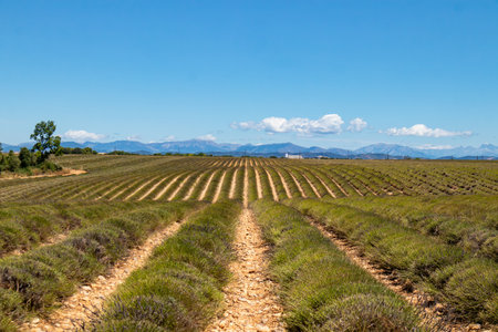 lavender field with vineyard, Drome Department, Rhone-Alpes, France
