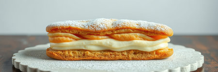 Delicious pastry filled with creamy layers displayed on a neutral background