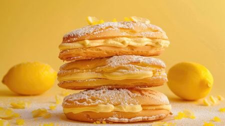 Lemon and honey madeleines with lemon zest on a light yellow background