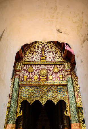 wood carving door decorated in the temple ,Thailand