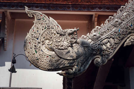 beautiful details of Thai fine arts at Buddhist temple. beautiful new temple near Chiang Mai, Thailand