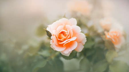 Detail of a beautiful peach rose on an unfocused background in the nature