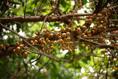Longan ripe fruits (Dimocarpus longan) on the tree, in shallow focus