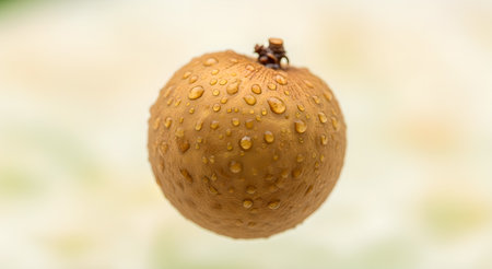 A close-up shot of a longan fruit covered in water droplets, highlighting its texture and freshness. Perfect for showcasing healthy eating and natural beauty.