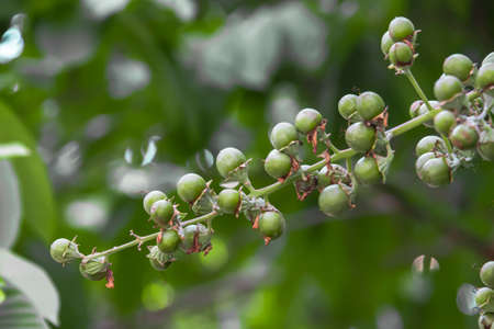 A closeup of the growing sweet and delicious Baccaurea motleyana fruits