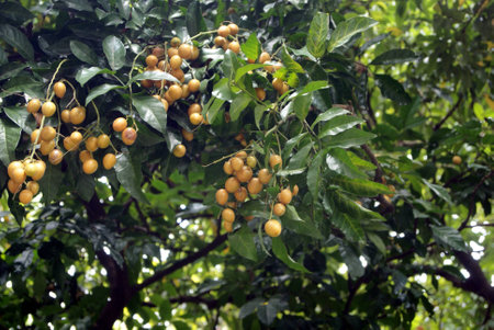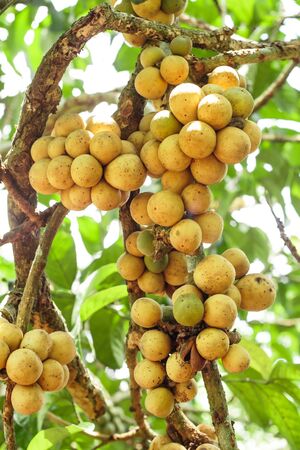 Lansium domesticum, a tropical fruit with a sweet, round, thick, coarse yellow taste called longkong.