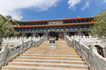 The staircase leading to the Buddhist temple of the Po Lin Monastery at Lantau Island, in Hong Kong. Hong Kong is popular tourist destination of Asia.