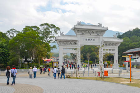 HONG KONG,HONG KONG - December 8, 2013:Entrance Gate to the Po Lin Monastery.The Po Lin Monastery in Lantau Island is a Buddhist temple and complex which despite being a popular attraction to tourists