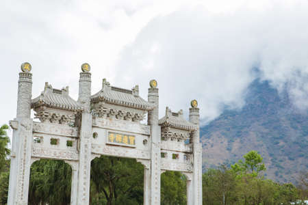 Hong Kong - Ngong Ping Piazza arch as gate that leading to Po Lin Monastery and Big Buddha