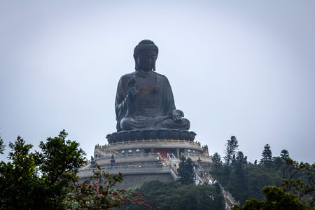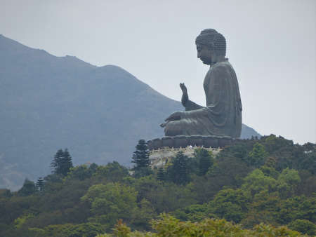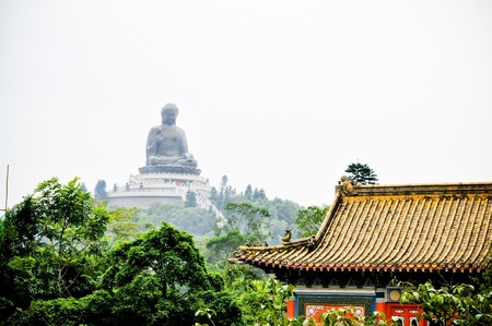 Big Buddha statue High mountain, buddhist temple in Hong Kong China