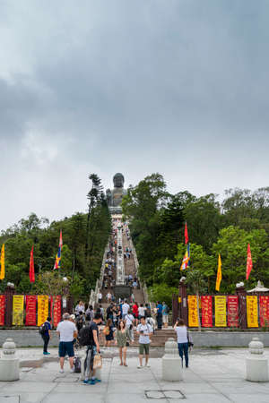 Hong Kong - March 21, 2016:The tourists on the stairs leading to the statue of Big Buddha in Po Lin Monastery
