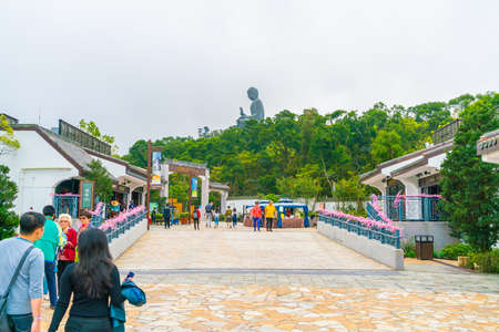Hong Kong - May 4,2018 : The tourists visit the enormous Tian Tan Buddha statue at Po Lin Monastery in Ngong Ping, Hong Kong.