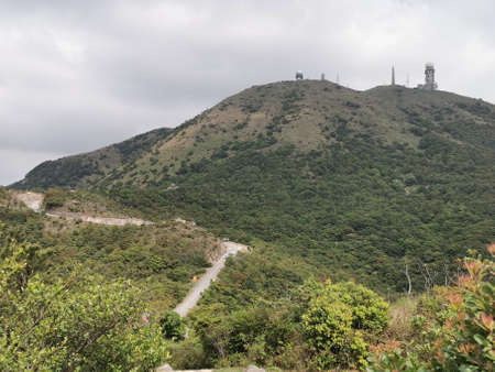 Trail on the top of the mountain Lantau. View from the top. Lantau Peak, Hong Kong