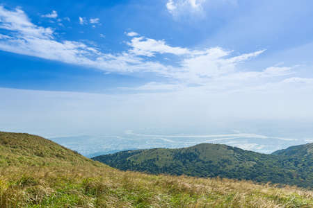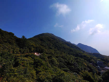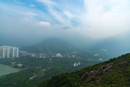 Breathtaking view of Ngong Ping highlands in Hong Kong. Seen is the mountain and hills,Picture is taken from the Giant Buddha or Tian Tian Buddha monastery.