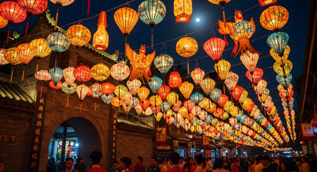 A mesmerizing display of chinese culture as lanterns shine bright during china's new year festivities, symbolizing good fortune