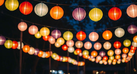 Vibrant lanterns brightening the mid autumn festival with warm lights and festive joy