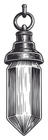 This vintage pendant light illustration features intricate detailing in a black and white vector drawing style, perfect for home decor projects.
