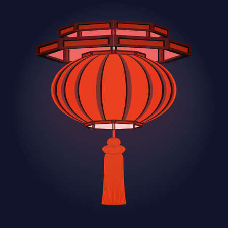 Red Chinese traditional paper lantern. Glowing on a dark background