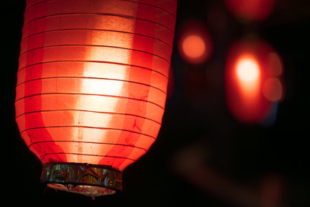 Red paper lanterns in the Chinese New Year festival, selective focus