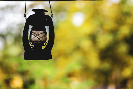Oil Lamp Lighting up the Darkness or Burning kerosene lamp background, concept lighting