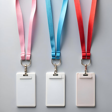 Close-up of diverse badges on lanyards, highlighting attendees names, job titles, and pronouns --ar 16:9 Job ID: 953d38e2-d968-49ee-9ef0-a3d0058fadbb