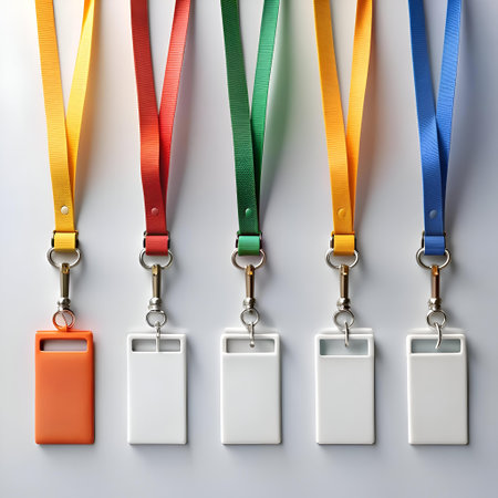 Blank ID card holders with colorful lanyards. Perfect for events. conferences. or any business setting. Easily customizable with your logo and branding.