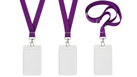 Blank white lanyard with a detachable badge holder. perfect for conferences. events. or branding purposes. Isolated on a white background. ready for your text or logo.