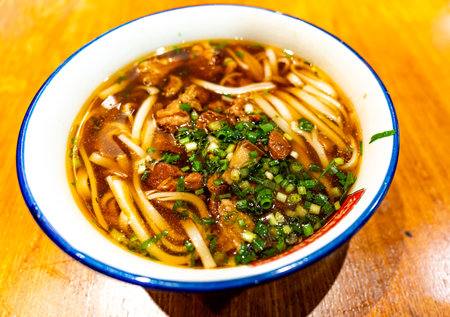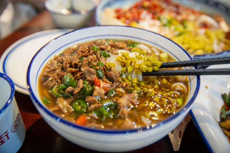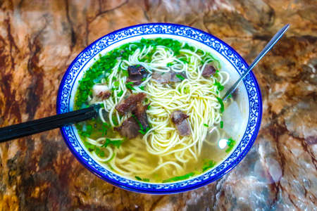 lanzhou beef noodles, lanzhou stretched noodles, a local snack in gansu province, China
